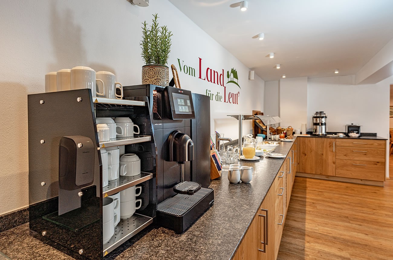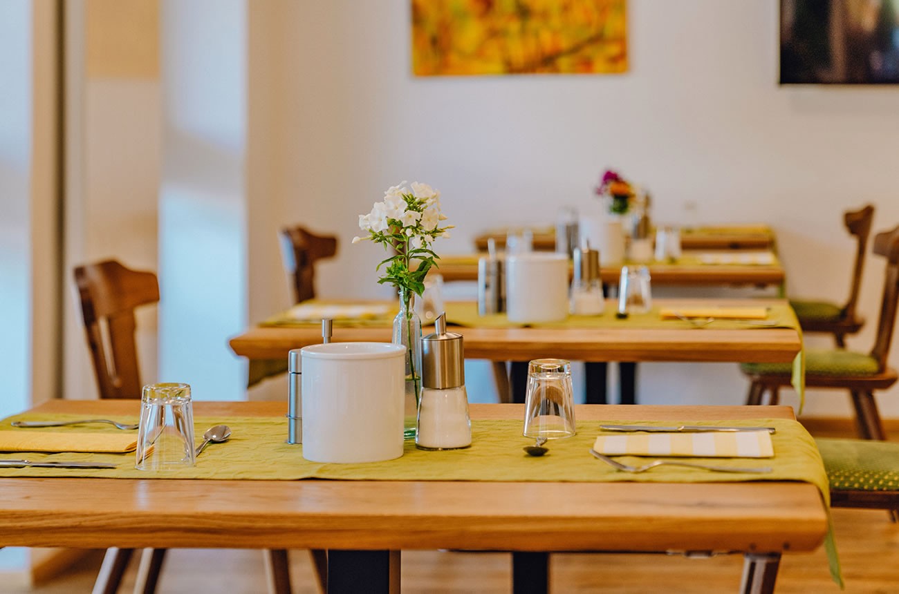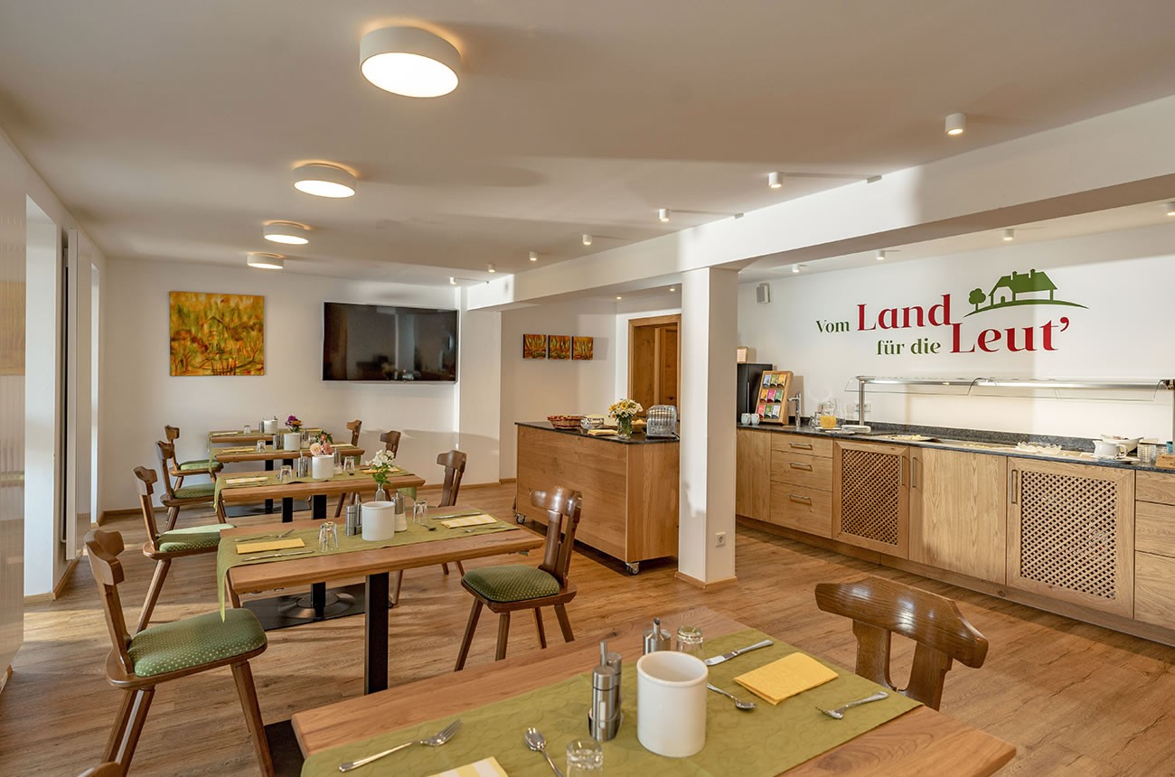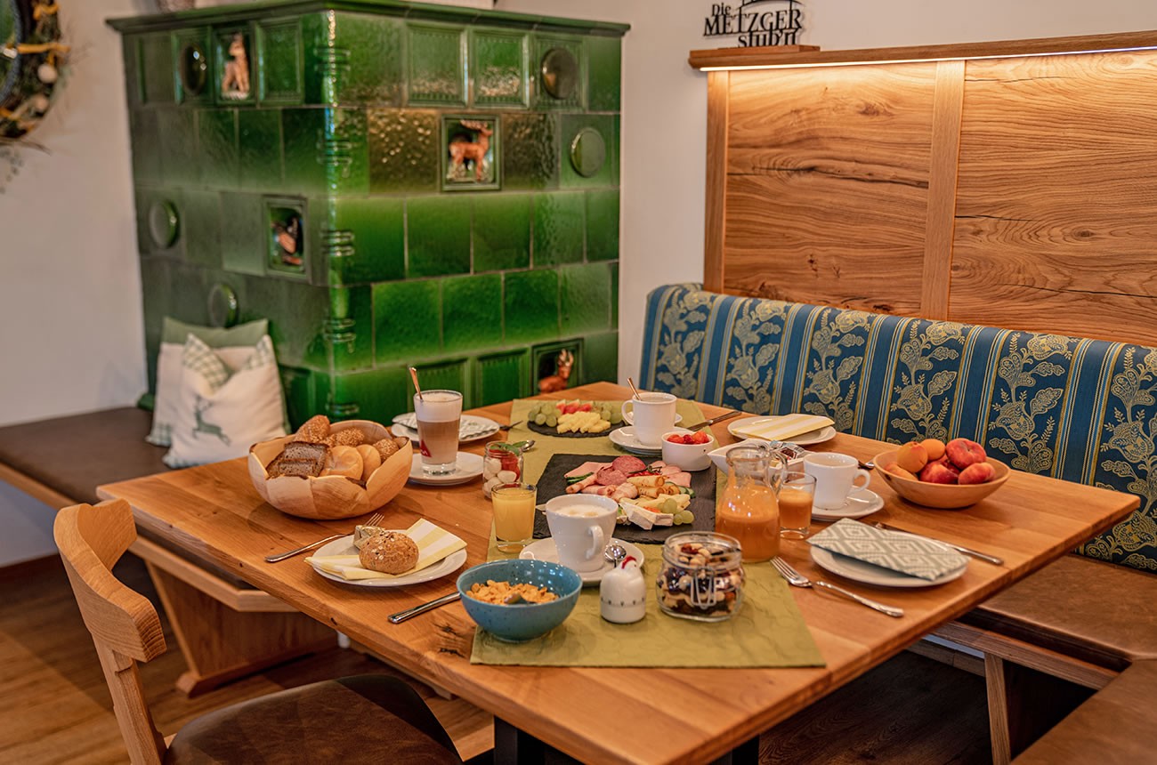 Das Landhaus Die METZGERstub'n bietet sich an, einen rundherum unkomplizierten Urlaub zu machen. Mit Gemeinschaftsraum, Getränken zur freien Entnahme, einem eigenen, kleinen Wellnessbereich und ganz viel Erholung werden die Urlaubstage wie im Flug vergehen. Ihre aktiven Urlaubstage beginnen Sie mit einem herrlichen Frühstück. Das Frühstück, das ja die wichtigste Mahlzeit des Tages ist, wird von 7.30 Uhr bis 10.00 Uhr im Landhaus serviert. Je nach Buchungslage verlegen wir in den Sommermonaten das Frühstück vom Landhaus in das Stammhaus.